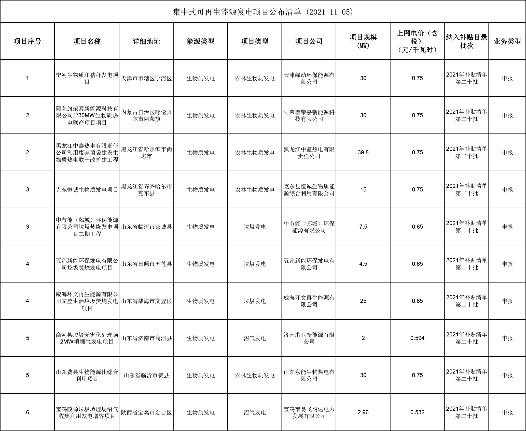 国网新能源云平台公布2021年第二十批可再生能源发电补贴项目清单,集中式生物质发电项目数量为10个,核准/备案容量为186.76兆瓦。